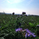 Neugierig wie ich bin, inspizierte ich die Gegend rund um den Bienengarten, dabei entdeckte ich ein großes Feld mit Büschelschön (Phacelia tanacetifolia), somit war das Geheimnis gelüftet von wo die Immen die lila Proteinpäckchen bei schleppen. Solche eiweißreiche Nahrung ist perfekt für die Aufzucht der Winterbienen.