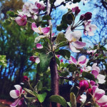 Im Bienengarten blüht und sprießt es momentan gewaltig. U.a. Apfel, Bärlauch, Flieder, Goldnessel, Lorbeerkirsche, Pflaume, Süßkirsche, Tulpen, Waldmeister, Weißdorn und vieles mehr.