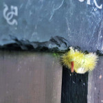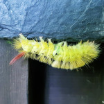 Zu meiner Freude, hat mich heute am Tor zum Bienengarten eine kleine Raupe, ein Buchen-Streckfuß (Rotschwanz) begrüßt! 🐛