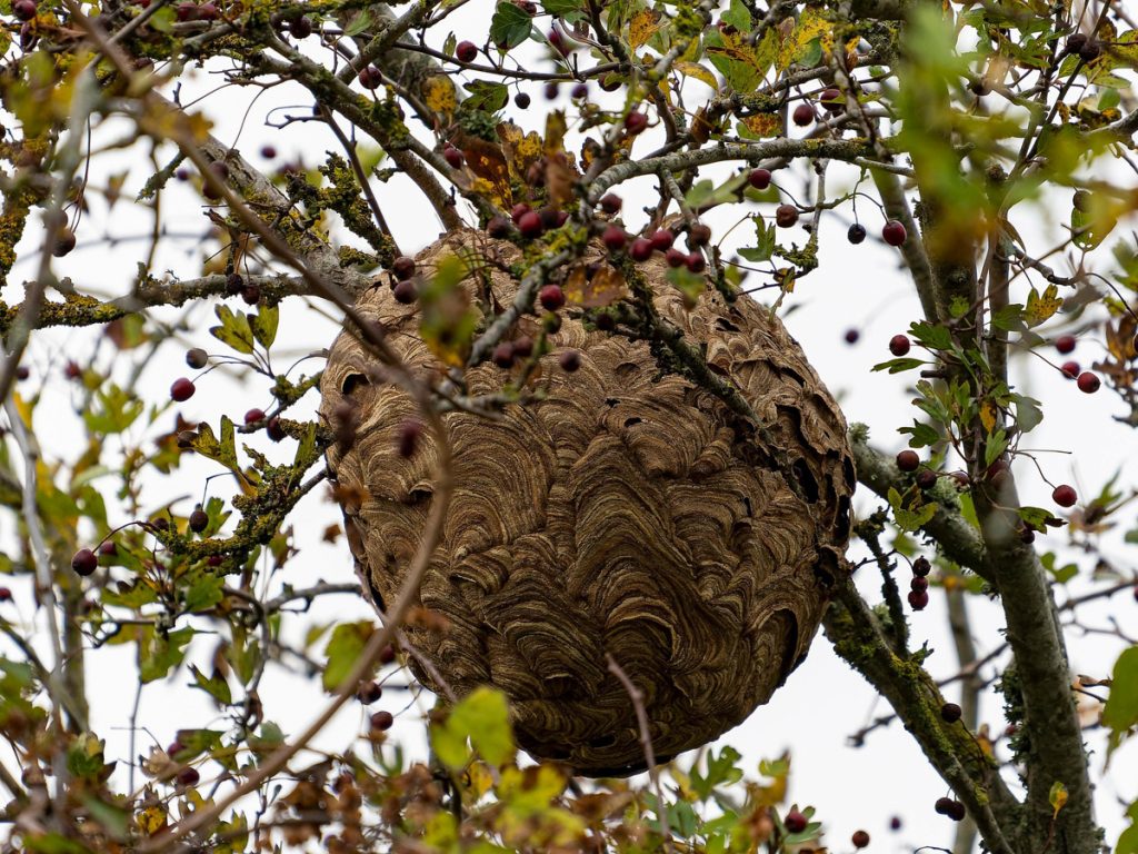 Versuchen Sie auf keinen Fall, ein Nest selbst zu entfernen, da die Tiere aggressiv werden können. Es besteht Verwechslungsgefahr mit heimischen Hornissen, die unter Naturschutz stehen.